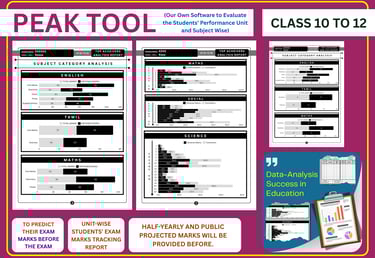 Our school has developed its own performance analysis software to support Class 10 and 12 students. With AI-based and data-driven insights, the system provides detailed performance reports, identifies focus areas, and helps students prepare effectively to achieve centum and top scores in their examinations.