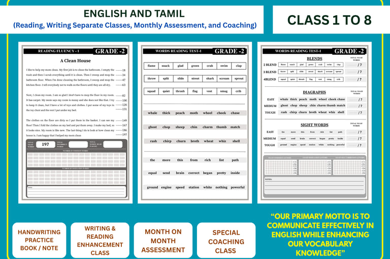 Our school conducts monthly reading and writing assessments to carefully monitor each student’s progress. Through dedicated handwriting practice books and continuous tracking, we identify learning needs and provide special intervention to help every student improve their reading, writing, and handwriting skills.
